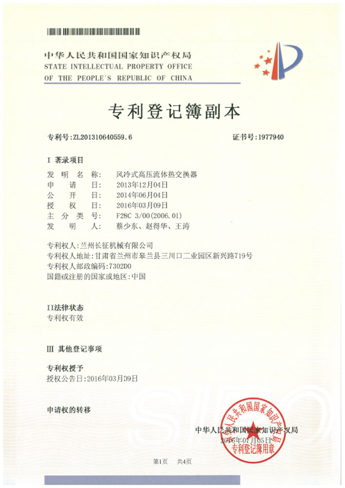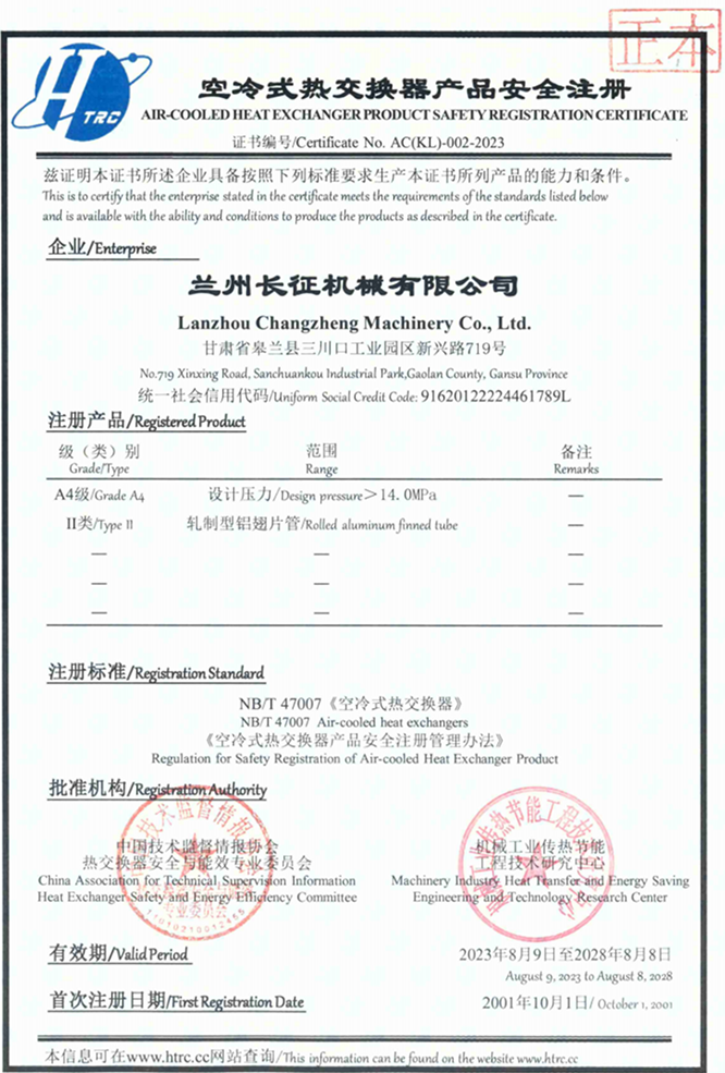 A4級空冷式熱交換器產(chǎn)品安全注冊