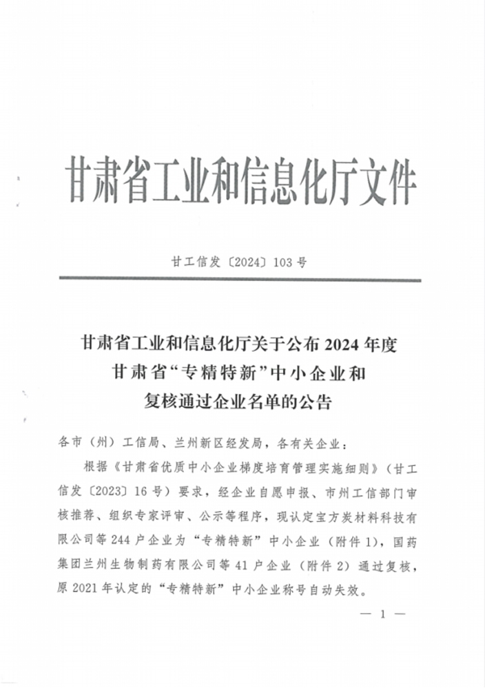 2024年甘肅省“專精特新”企業(yè)復(fù)核通過名單