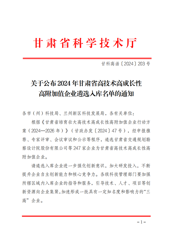 2024年甘肅高技術(shù)高成長性高附加值企業(yè)遴選入庫名單